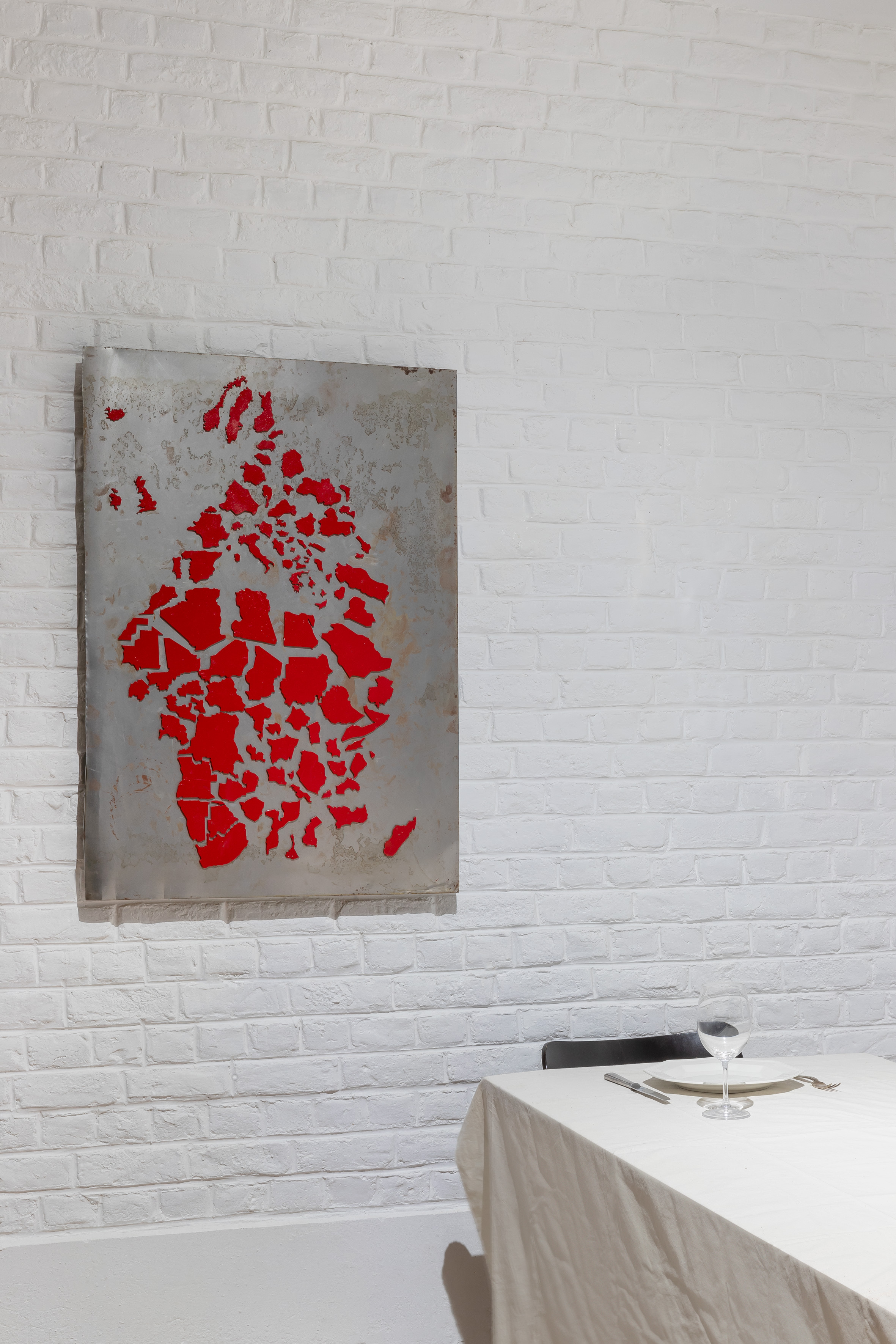 "l'inconscient humain actuel est en train de nous mener au suicide collectif. La pulsion du mort prend le dessus sur la pulsion de la vie, après une période (covid) où l’activité humaine s’est ralentie permettant à la nature de se régénérer. Tout cela l’homme l’a vite oublié, en faveur d’un recommencement délirant et aveugle. On pourrait résumer ainsi : plus de désert et moins d’eau. L’eau est la vie de l’être humain, comme toute espèce est issue de l’eau. La mer meurt avec nous, et nous avec elle. Le désert prend sa place et oblige à de nouvelles migrations désespérées. Cette exposition est une interprétation, si on veut, historiographique et donc subjective, de ces mots « Hic et Nunc », par deux artistes aux expressions et pratiques différentes, mais bien sœurs."